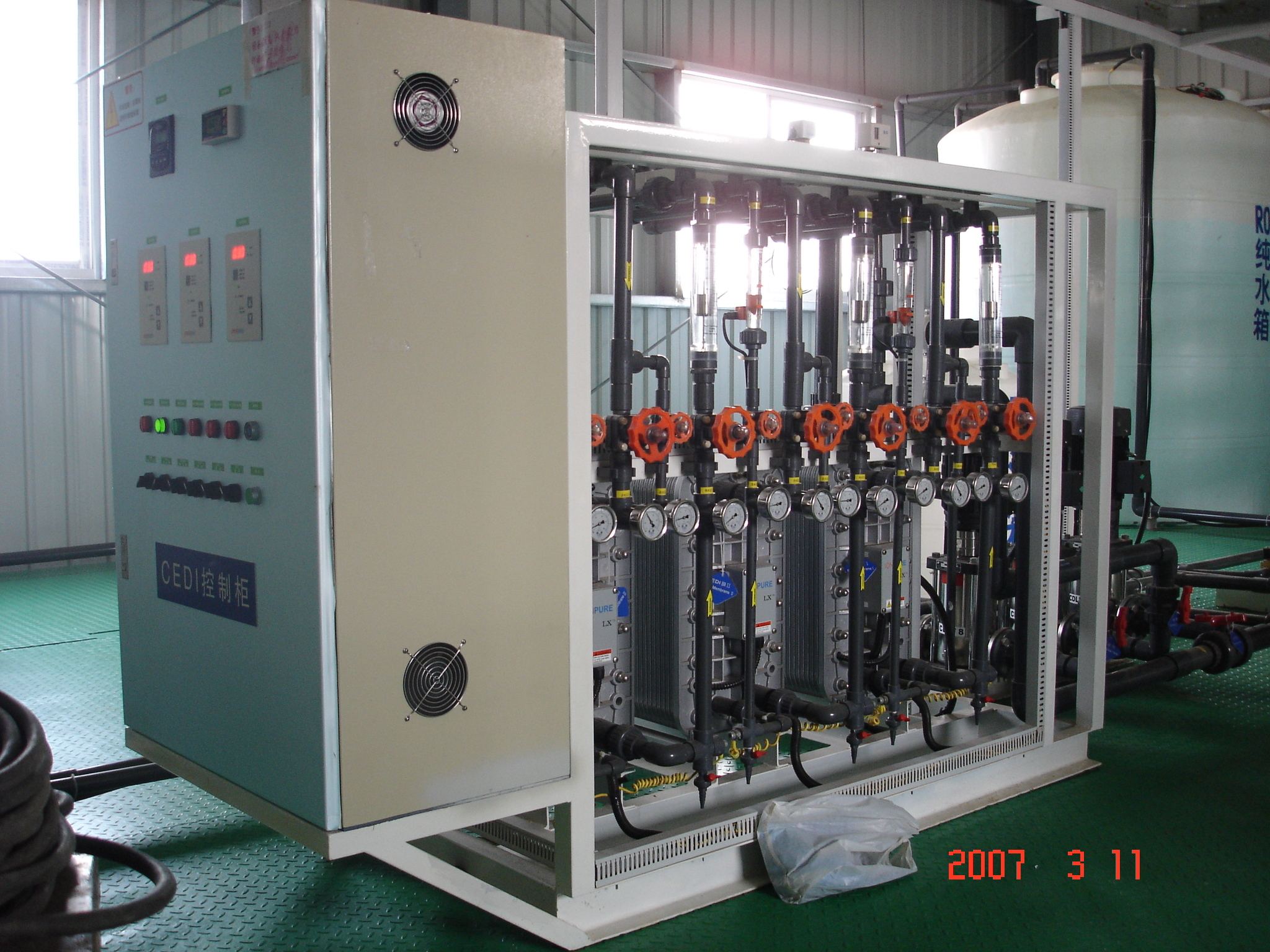 3. 降低了安裝的要求:EDI系統與相當處理水量的混床相比,有較不的體積,它采用積木式結構,可依據場地的高度和窨靈活地構造。 模塊化的設計, 使EDI在生產工作時能方便維護
